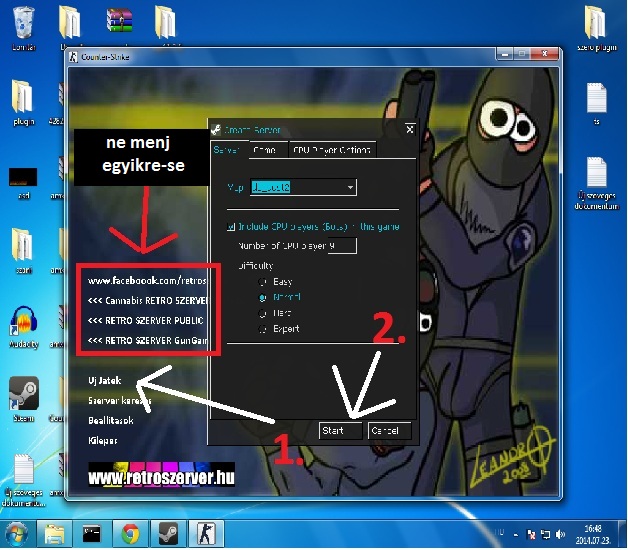 1. (Uj jatek) ---> 2. (Start)