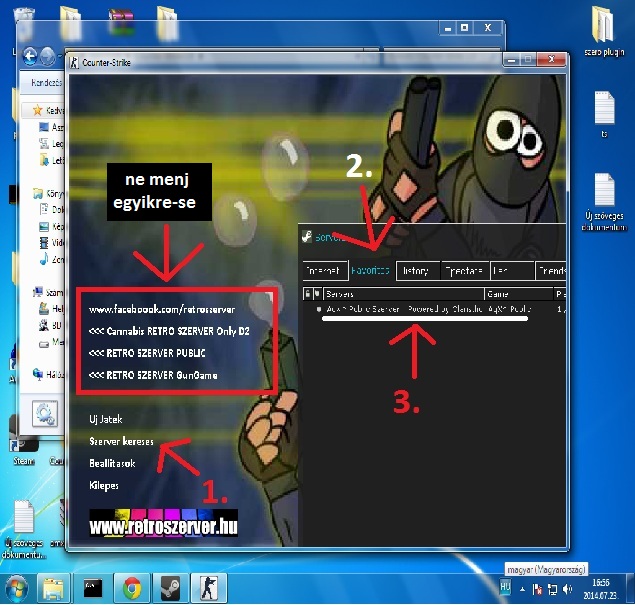 1. (Szerver kereses) ---> 2. (Favorites) ---> 3. Dupla kattintas (megnyitas)